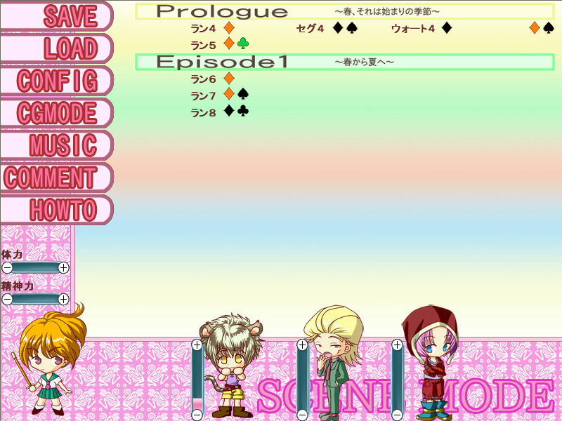 パラメータや好感度を操作しながら、自分で好きなシーンを選んで読み進めていく感じです。