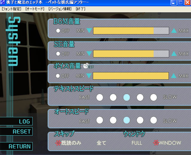 システム画面では色々と細かく設定ができ、ボイスも音量を確認しながらの調整が可能で便利です。